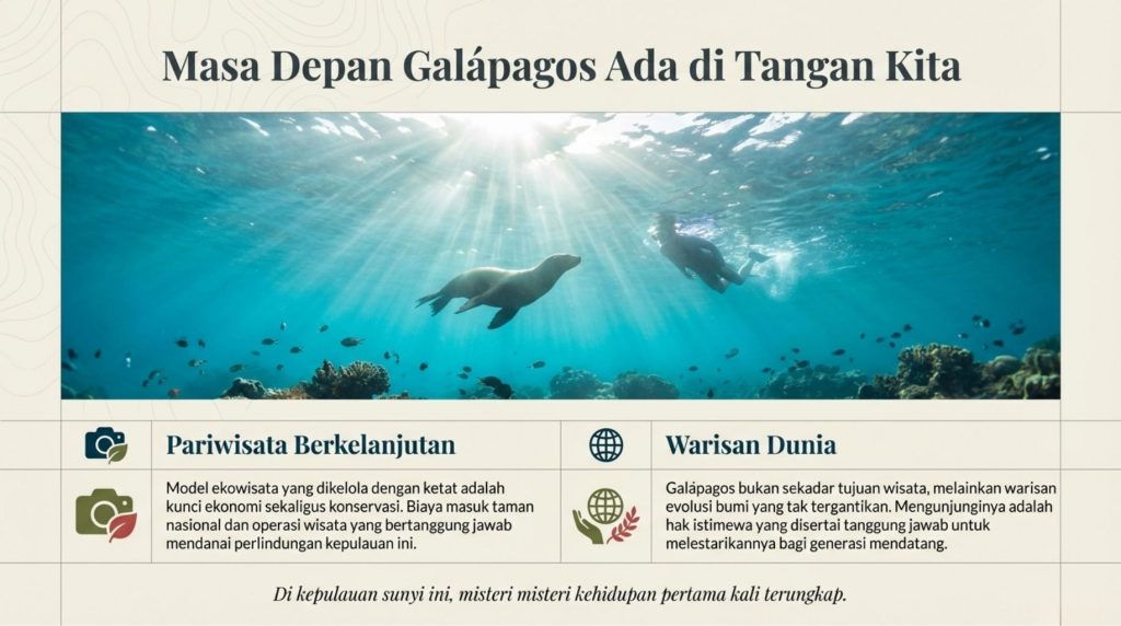 Kita bisa mulai dari hal kecil di sekolah, misalnya dengan mengurangi penggunaan plastik sekali pakai atau aktif di ekskul pecinta alam. Semangat konservasi yang ada di Galápagos bisa banget kita bawa ke sekolah kita sendiri!