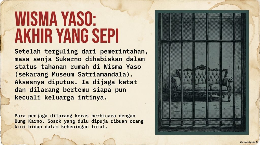 Setelah nggak jadi presiden lagi, Bung Karno dijaga ketat banget di Wisma Yaso. Beliau bahkan nggak boleh sembarangan ngobrol sama orang luar. Suatu hari, anaknya yang bernama Guntur datang berkunjung.